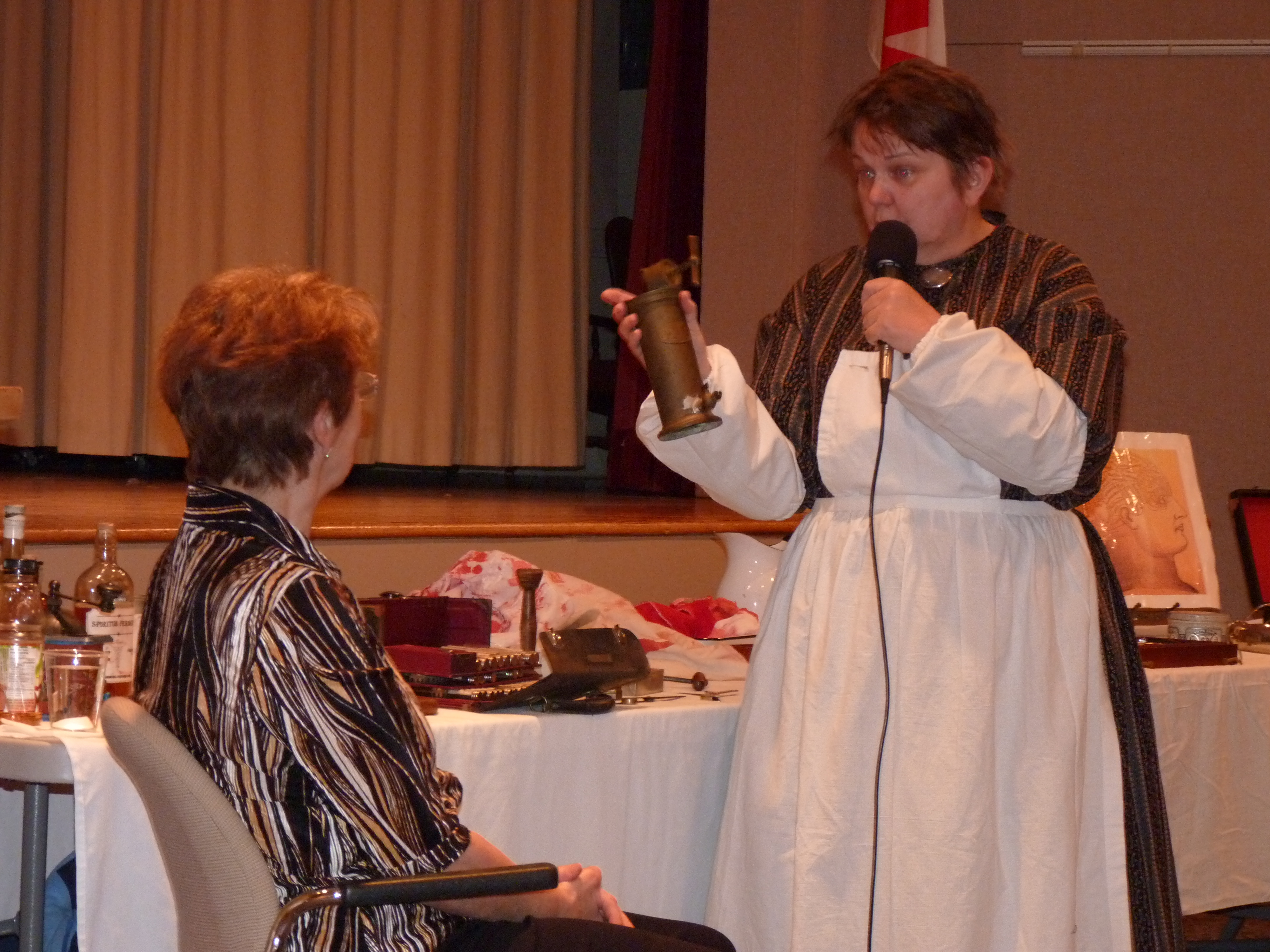 The nurse came, she diagnosed, and she entertained! Thank you to the 53 people who attended this week’s Speaker Series! Nancy MacLeod was our speaker and she shared with us traditional Victorian medicinal practices. Teeth were pulled, brains were operated on, limbs were sawed off, and leeches were used to try to remove bad blood.